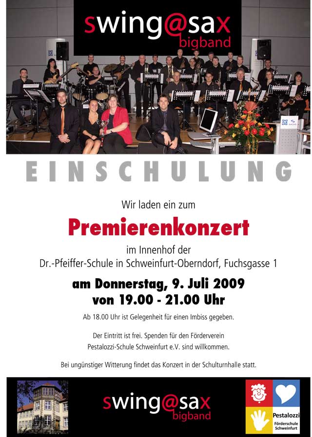 Am Donnerstag, 9. Juli 2009 feiert die swing@sax Big Band ihr Premierenkonzert in Schweinfurt-Oberndorf.